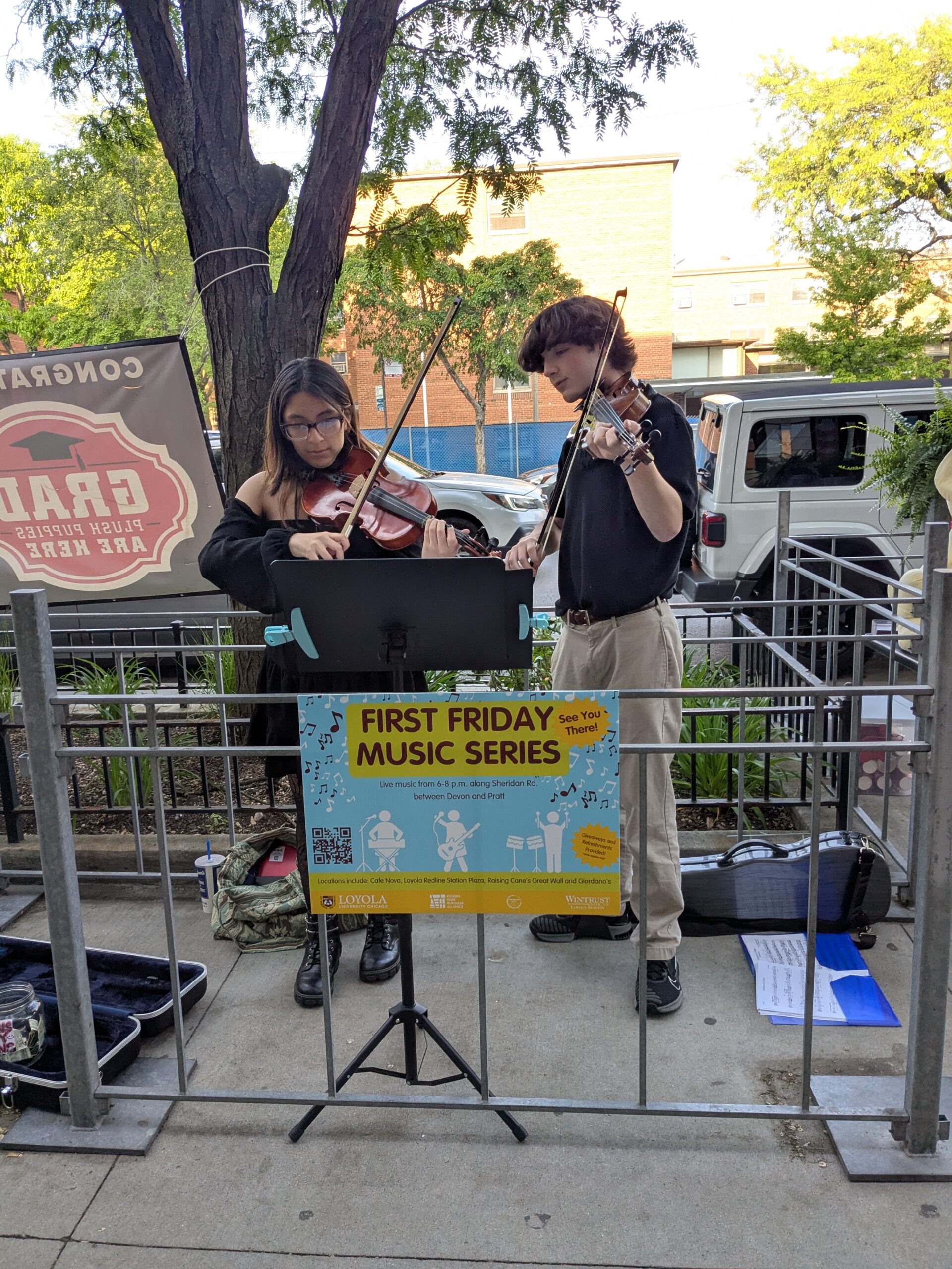 Join us for the First Friday Music Series, an evening of live music that will take place on Sheridan Rd. between Devon and Pratt. Enjoy performances on local business patios including Cafe Nova, Loyola Redline Station Plaza, Raising Cane’s Chicken Fingers, Great Wall / Arepa Pa’ Los Pana and Giordano’s.